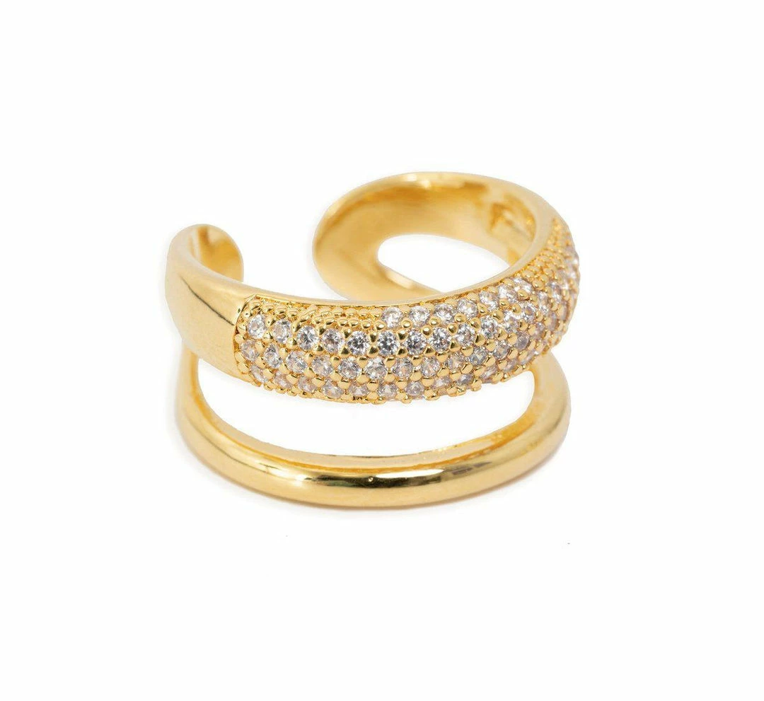 She is a stunner! 14k gold plated double band ring with cubic zirconia band accent.