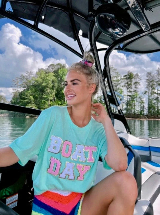 Such a cute tee…love the chenille lettering. Pair this with your favorite denim shorts or go up a size or two for an oversized swim cover up!
