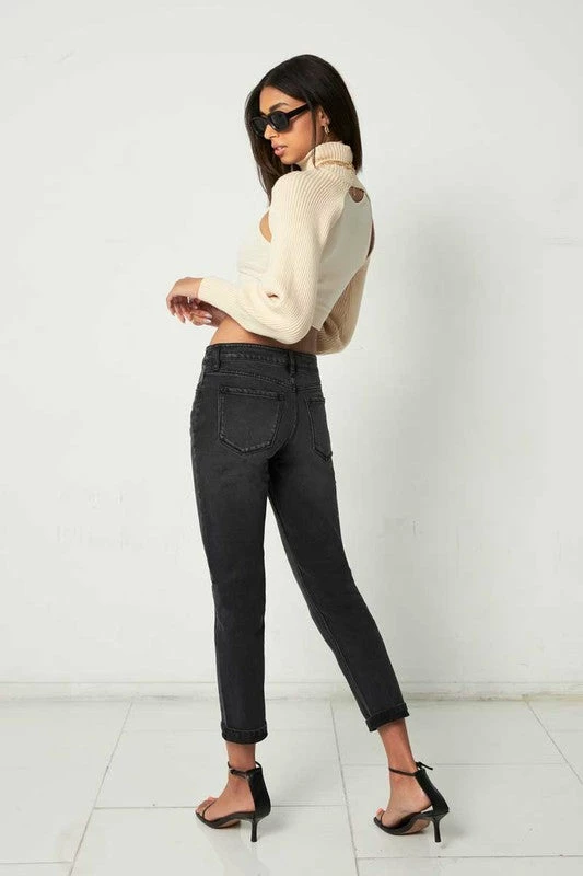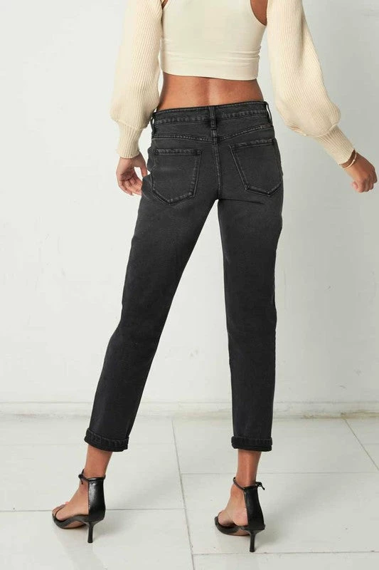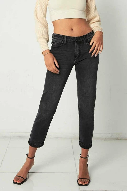 These trendy jeans are such a must-have style for any season! Features a retro 90’s straight leg design in a dark grey wash to give it that next level of style. Five pocket denim style, with button and zip closure.
