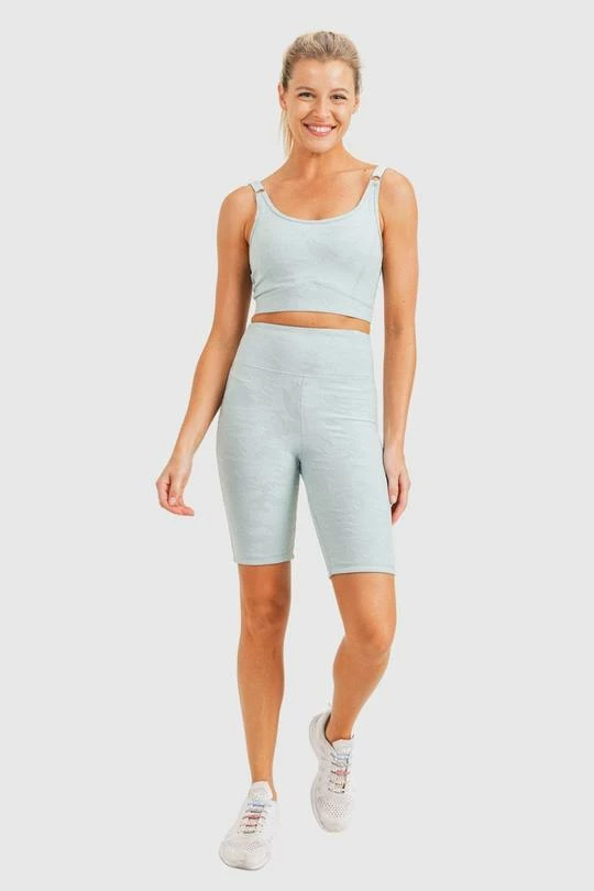 With adjustable bra straps and a half-circle cutout on the back, this Textured Camo print (a Mono B exclusive fabric) sports bra straddles the line between cute and fierce. SHOP the matching biker shorts HERE!