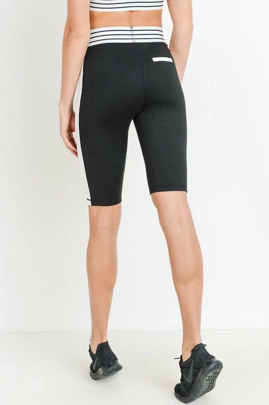 Be a black-and-white delight in these active biker shorts by Mono B! With its flattering white side panels, back pocket with white details, side pockets (perfect size for your phone), and striped elasticized waist band, these shorts are the perfect alternative to leggings. SHOP a matching sports bra HERE!