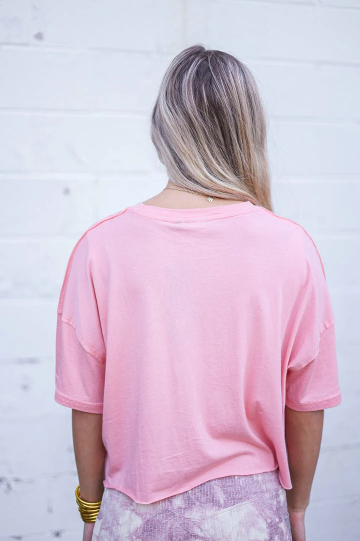Mono B boxy flow crop athleisure pocket top in coral pink