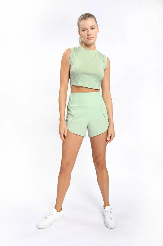 Mono B tencel open overlay back cropped tank top in fair greenÂ