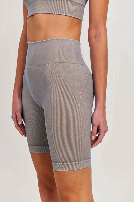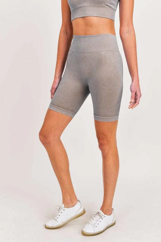 These adorable ribbed athletic biker shorts are sure to become your favorite! Stay stylish and comfortable while working out, running errands, or just lounging with this lightweight material! The material moves with you and has a little bit of stretch, too! These leggings are sturdy enough to handle an afternoon of running, but are chic enough to rock while hanging with your girls! Seamless biker-length leggings feature a signature splice accent on the side with a ribbed and smooth texture combo. Add the matching sports bra for the perfect look!Â