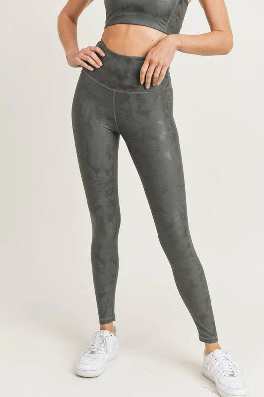 Mono B overlay metallic foil print high waist leggings in gun metal