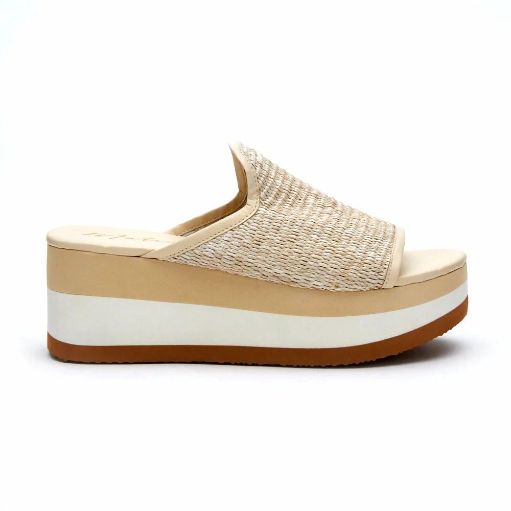 This wide strapped platform wedge is very chic yet has a sporty vibe. You can pair these trendy slides with everything! Love the neutral color and the ease of a slide on sandal.Â