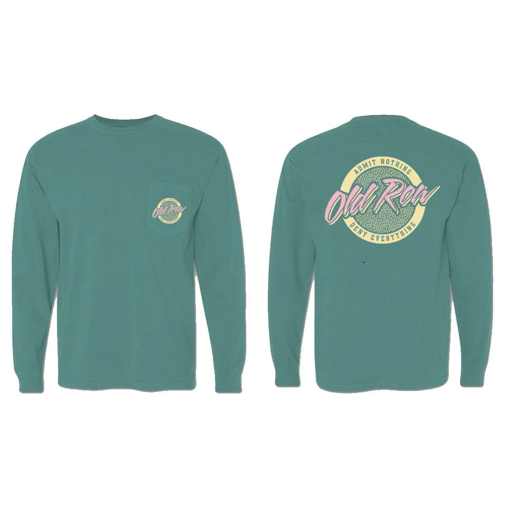 Old Row Circle Logo Seafoam Long Sleeve Pocket T Shirt “admit nothing deny everything”