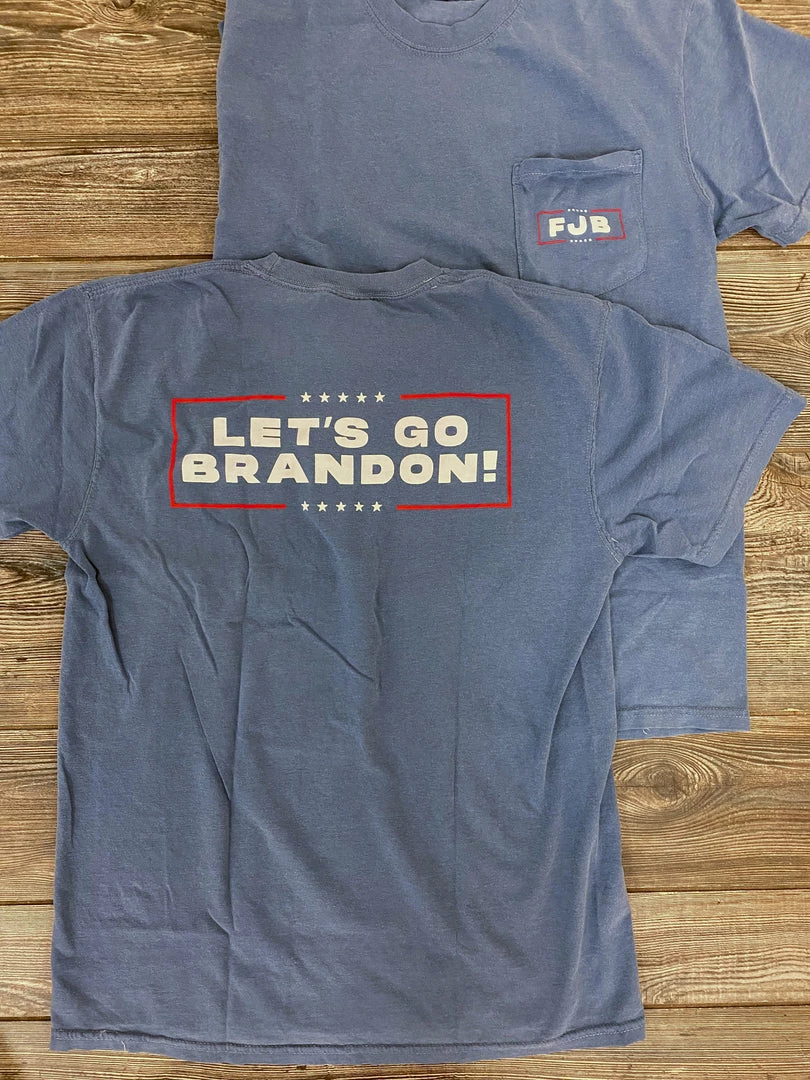 Old Row let’s go brandon blue t shirt. Short sleeve t-shirt with a chest pocket