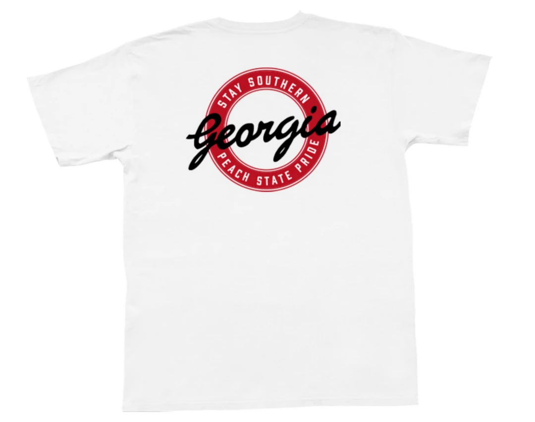 This Peach State Pride cotton short sleeve pocket t-shirt with a classic fit features a Retro Georgia Design.