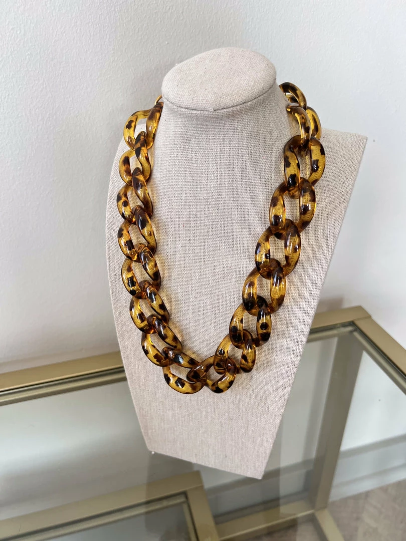This retro babe is so fun! Acrylic chain necklace in tortoise shell, hypoallergenic, and lightweight. Love, love, love!!