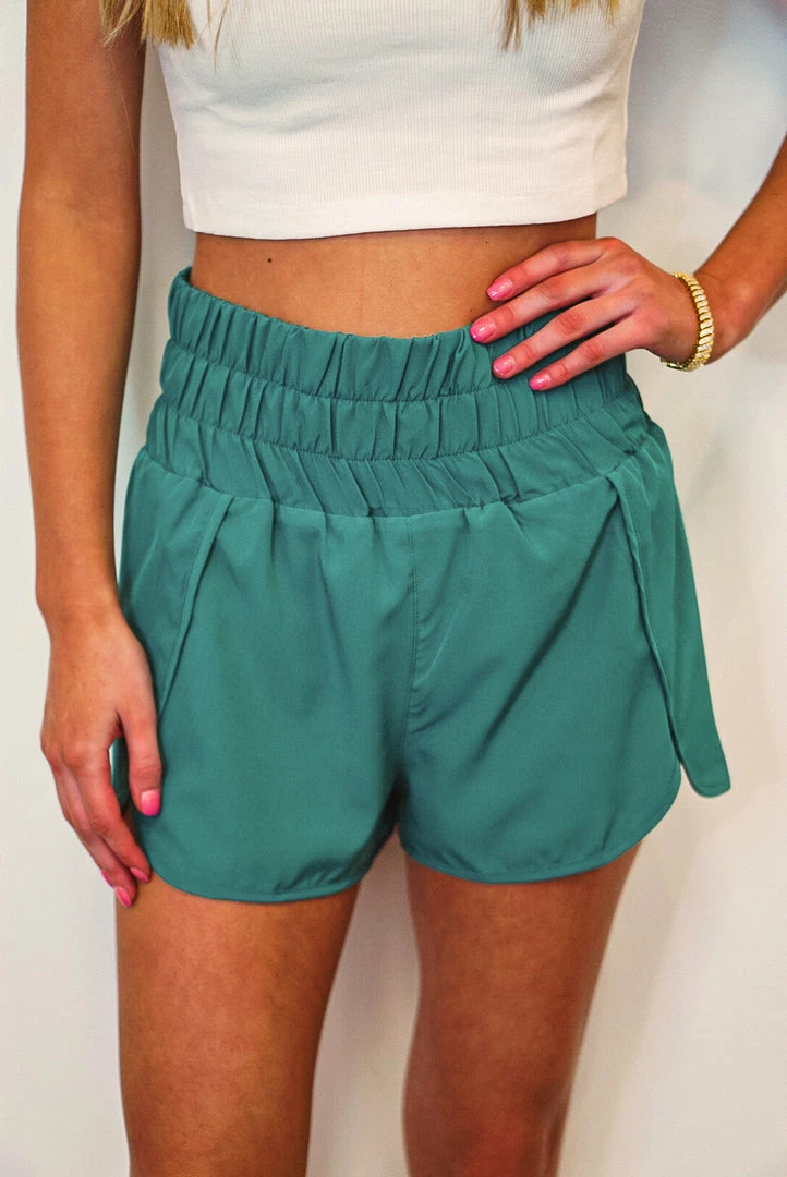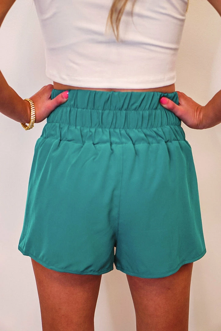 Kelly green elasticized high-waist active shorts