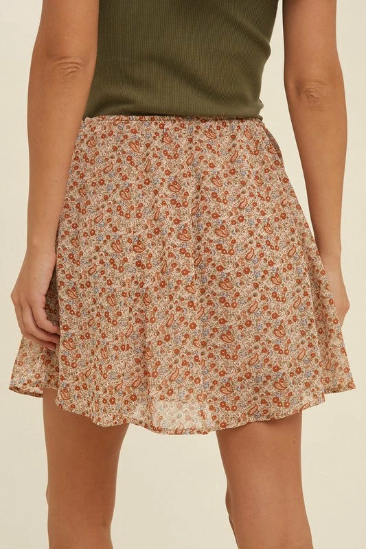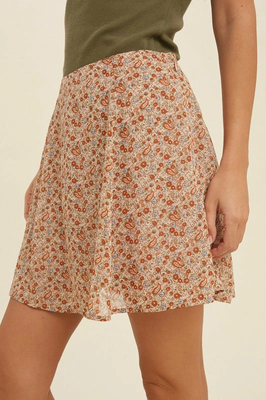 Apricot paisley floral print mini skirt
