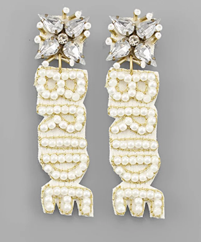 These stunning beaded earrings are a must have for any soon to be bride. Perfect for all her special occasions. Beaded earrings feature a felt back and posts stud back.