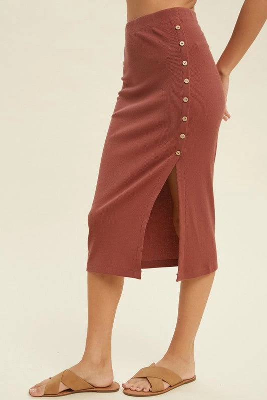 Purple Door Boutique Burl Wood Ribbed Knit Midi Skirt