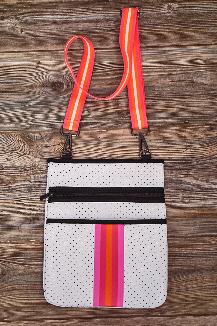 neoprene pink stripe white crossbody bag