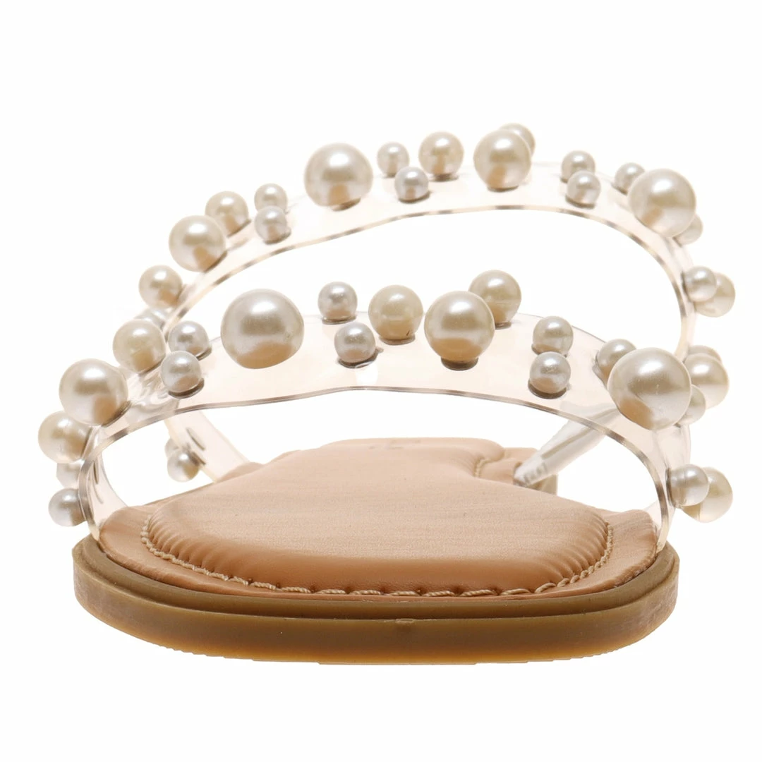 Double strap slide on sandals with pearl details.