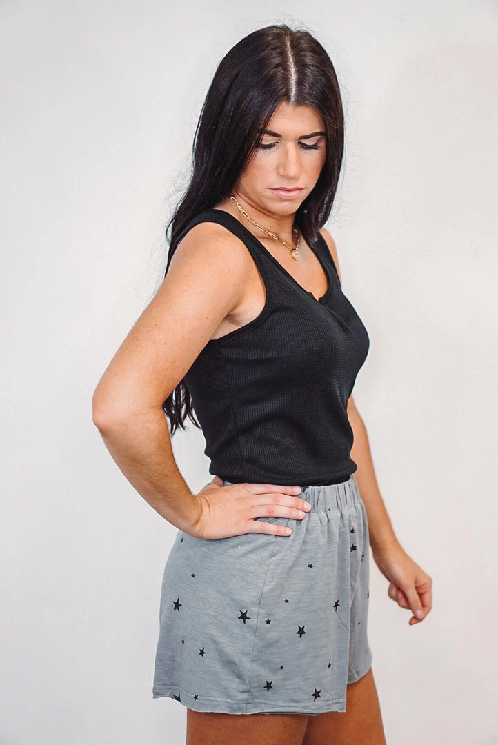 Super comfy star printed shorts that can be dressed up or down! Style with a solid tank, graphic tees, or crop tops. You can’t go wrong with these every day comfy cuties.