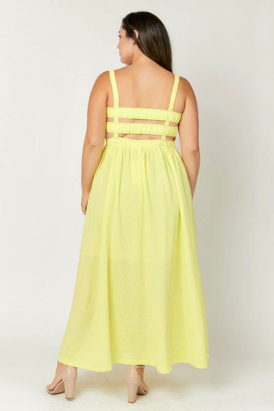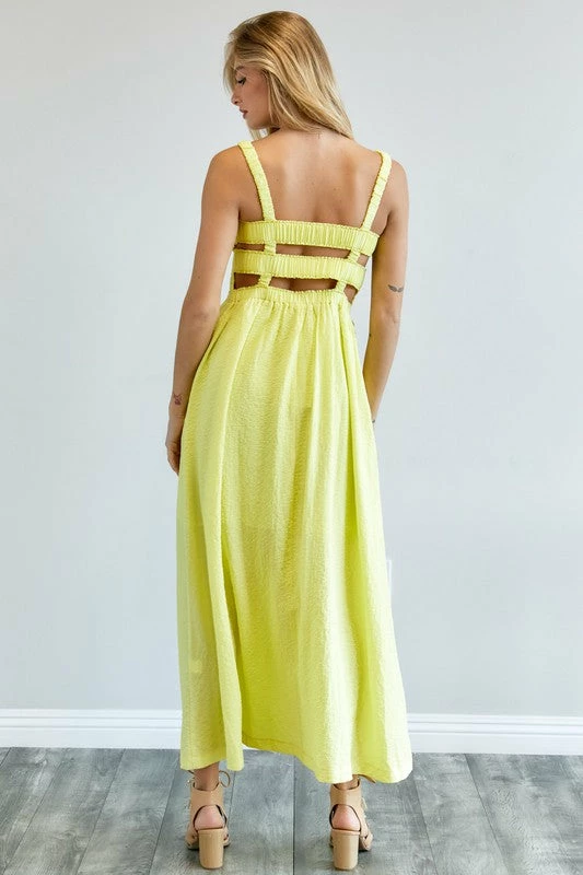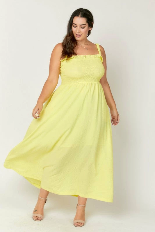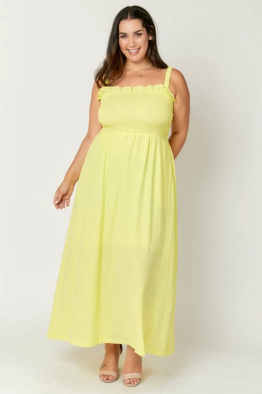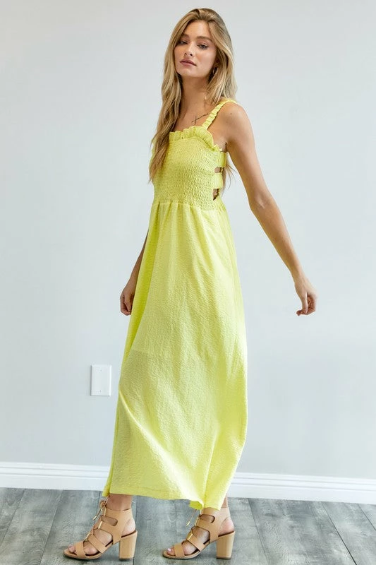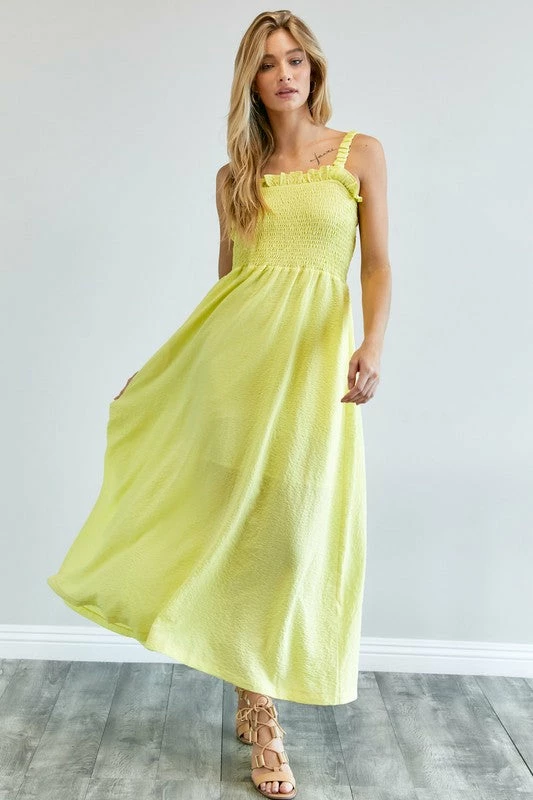 Lemon crinkle maxi dress with smocked bodice
