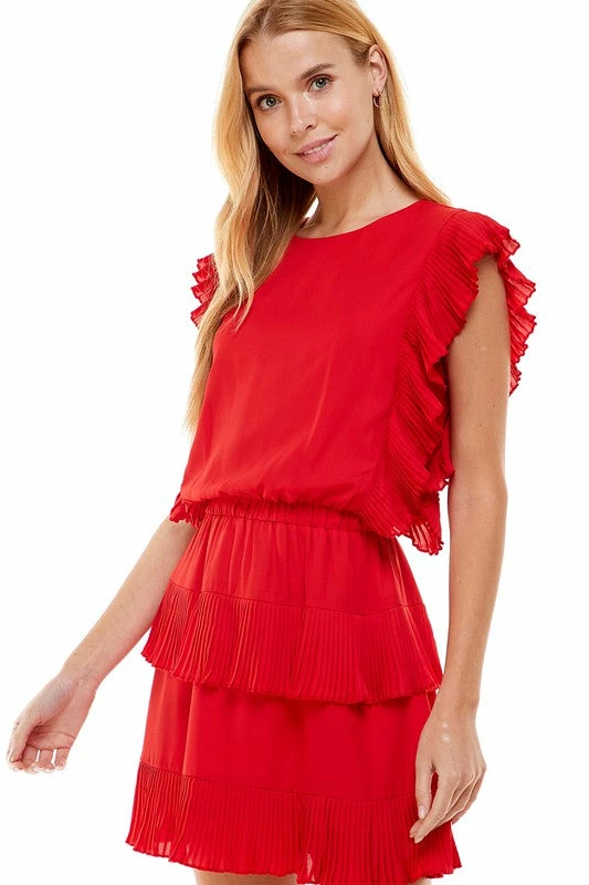 Just think how breathtaking you’re gonna look when you walk in wearing this glamorous red dress? So…yes this is a must have for all your occasions! Pleated ruffle detailed dress with elasticized waist and continuous pleating detailing along the dress.Â