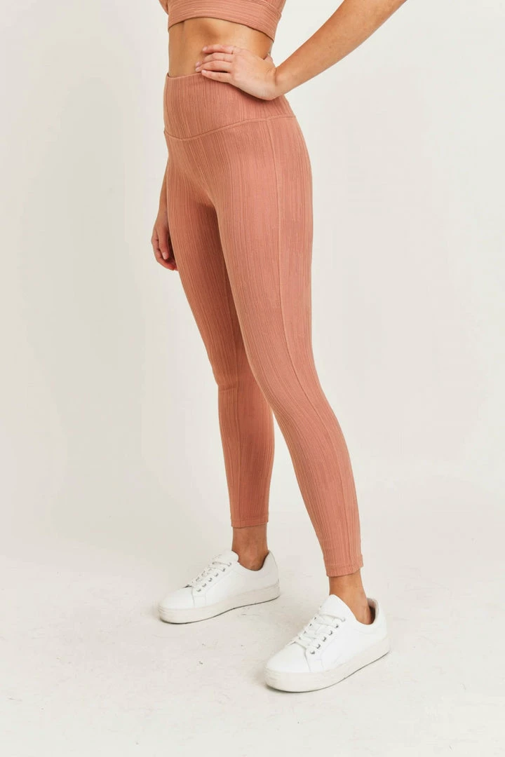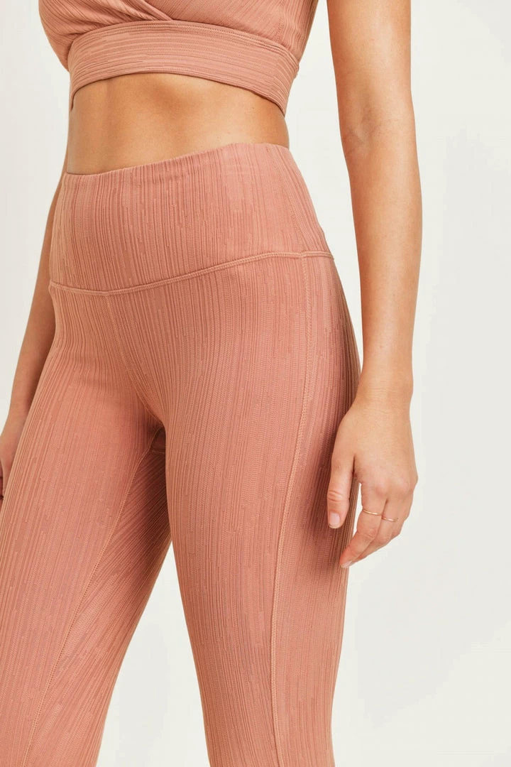 Mono B Textured Lines Jacquard High Waist Leggings In Hazel