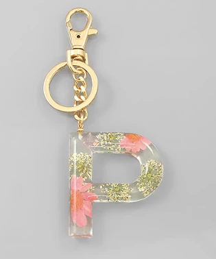 Such a cute keychain! Clear initial with a pressed pink flower inside. Perfect for your keys during those fun Summer drives!