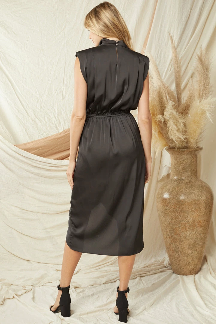 Black satin cowl neck sleeveless midi dressÂ