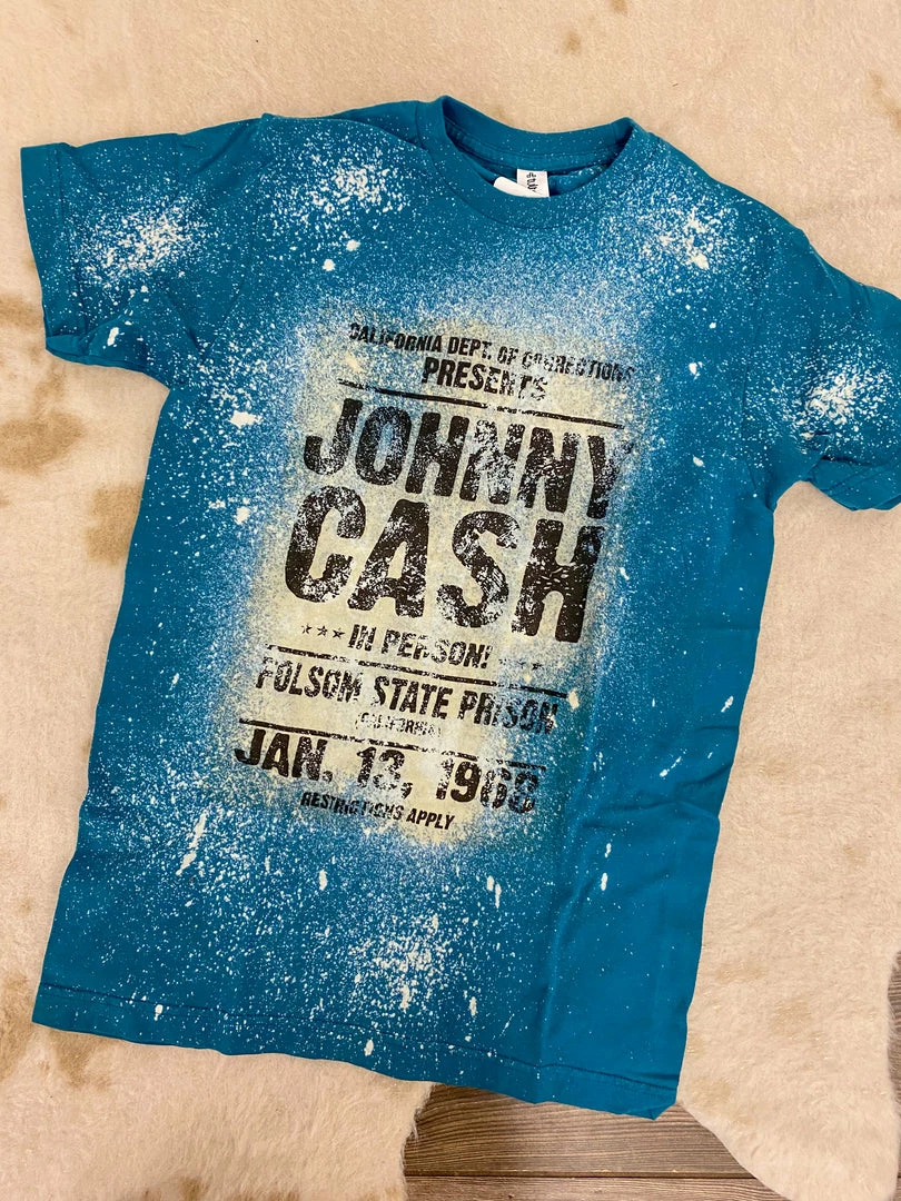 Johnny Cash Folsom Prison concert graphic tee in bleached teal