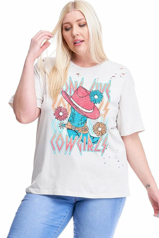 Long live cowgirls distressed graphic t shirt in light khaki