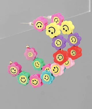 Nothing is cuter than these hoops! Multicolor rubber flower smiley face hoop earrings. Perfect for Spring and Summer!!Â