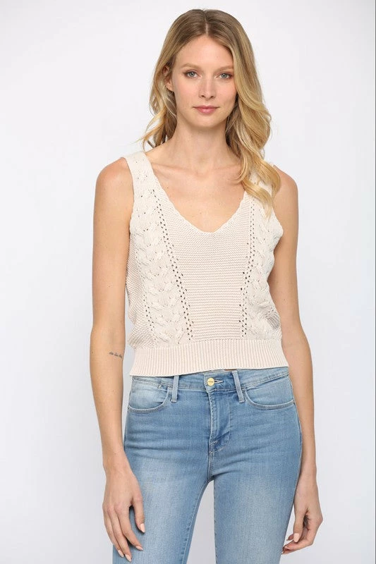 Cable knit sweater tank top in washed natural