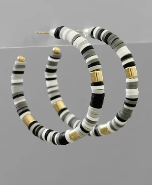 Beaded hoops are a must have this season! We are loving these black, white and grey rubber beaded hoops with gold bead accents. They are just too cute!