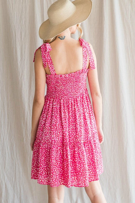 Babydoll dresses are all the rage this season, and we are so here for it!! This adorable pink dalmatian print dress features a smocked bodice with ruffle trimmed neckline, adjustable self tie shoulder straps, and a ruffle tiered bottom hemline. Wear this babe to the beach with sandals, a girls brunch with heels, or a casual day out with sneakers! Colors: Pink, red, and ivory.