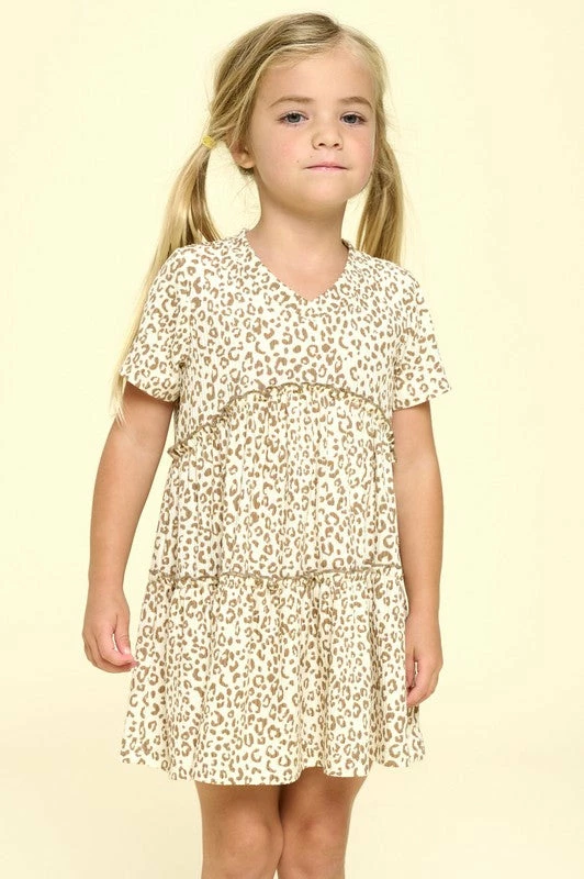 Leopard print youth babydoll dress in creamÂ