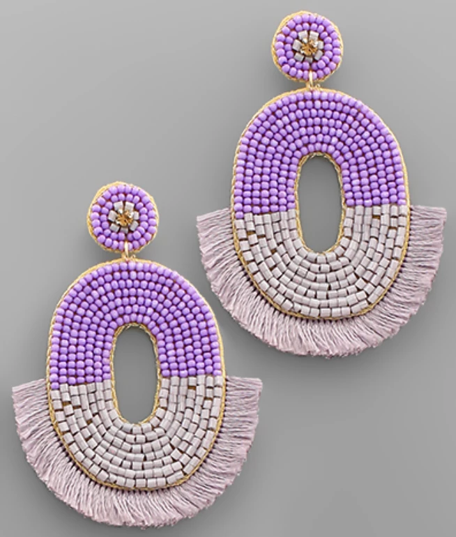 Beaded ear candy is all the rage and we are loving these purple fringed ones. You will want to wear these all season!