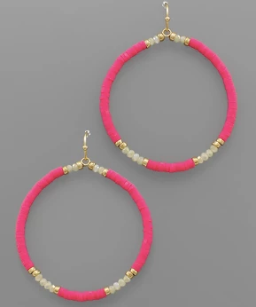 Purple Door Boutique Pink Beaded Gold Hoop Earrings