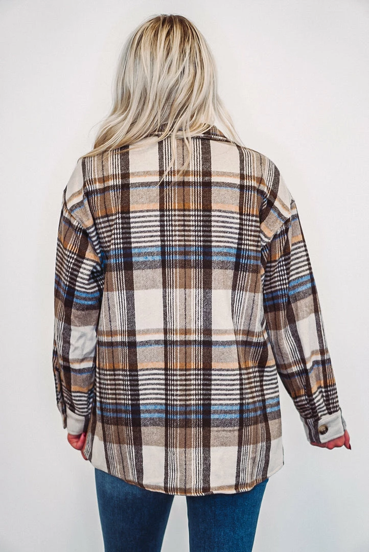 Brown and ivory brushed plaid flannel shacket