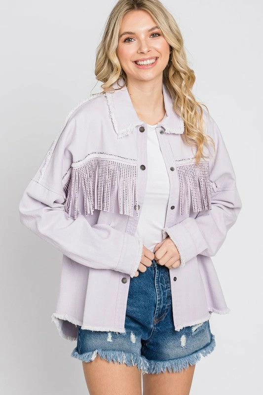 Lilac twill jacket with rhinestone fringe