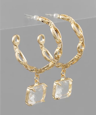 Square Crystal Gold Hoop Earrings
