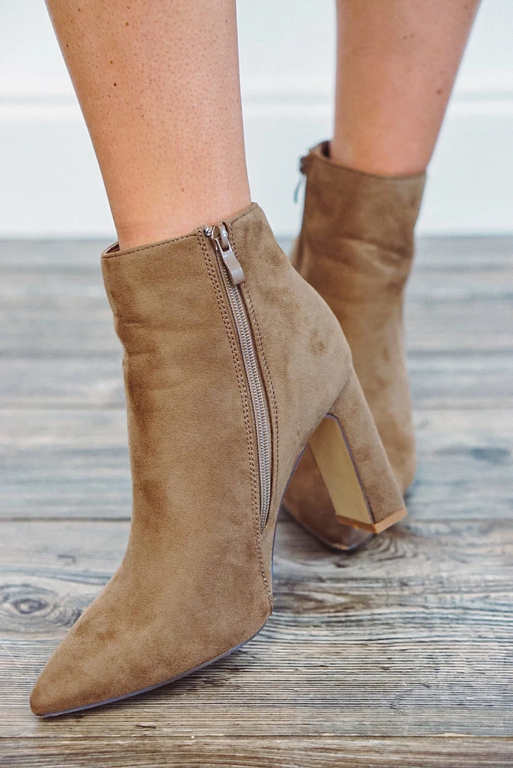 If you’re in need of the perfect dress boot for fall dresses and holiday wear…then this is the taupe booties ya got to have!!