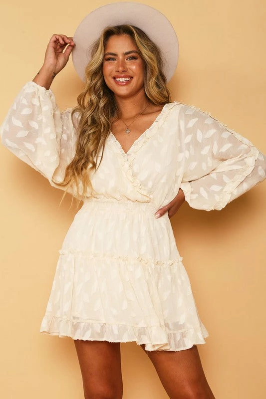 Cream jacquard leaf chiffon short dressÂ