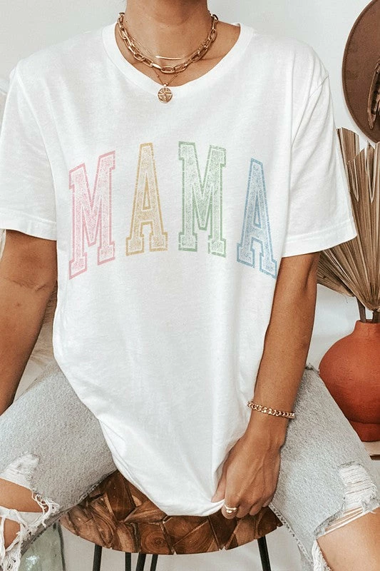 What a fun and sweet retro graphic tee! Oversized fit in vintage white with heavy distressed multi-color mama lettering. Just too CUTE!!