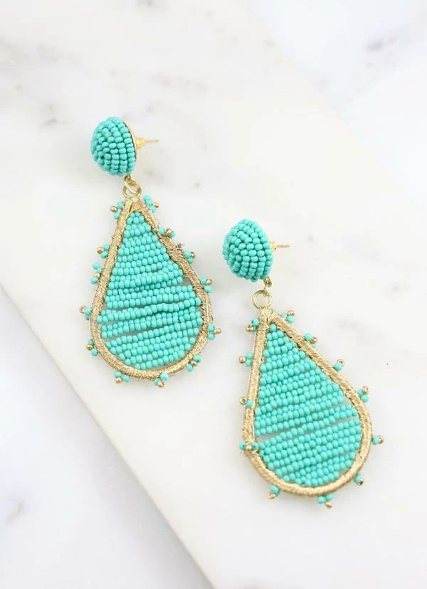 Beaded Teardrop Turquoise Earrings