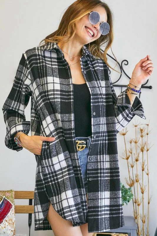 Black and white plaid flannel shacket
