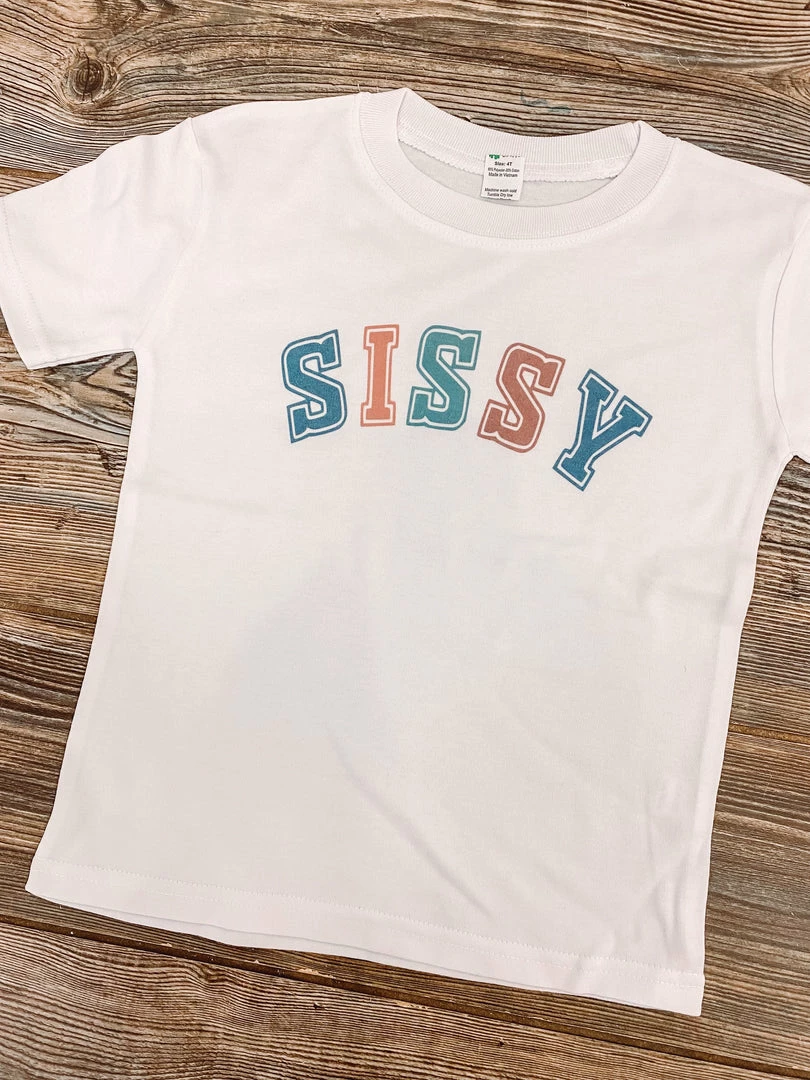Youth SISSY white graphic tee.