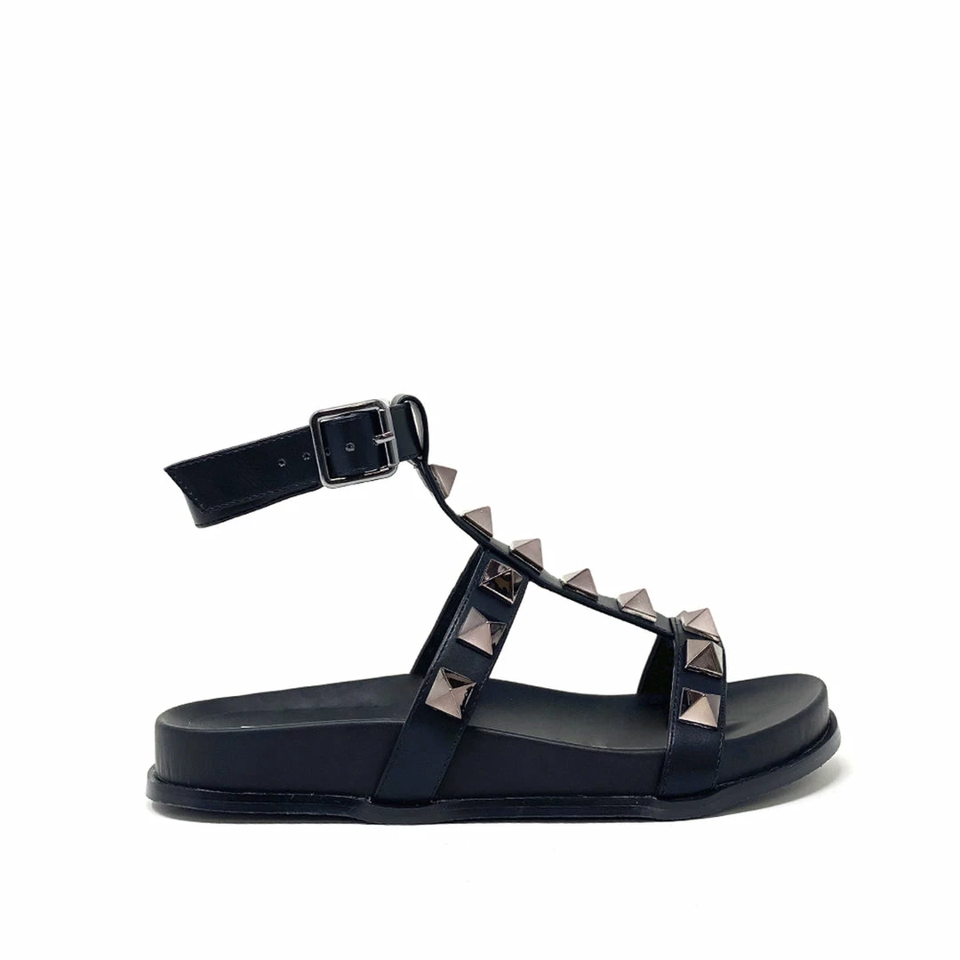 Shu Shop black studded ankle strap sandal.