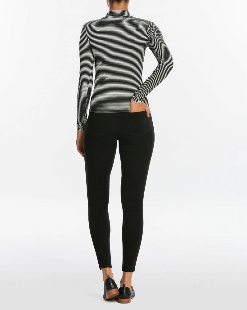 Jean-ish® Leggings feature a soft-knit fabric that feels like leggings and looks like your favorite jeans. With an interior shaping panel, this flattering style keeps you smooth and ultra-comfortable. The Slim is Built In™. Gut Check shaping technology tames your tummy. Faux-front pockets and functional back pockets create classic jean look. Hits at natural waist for great coverage and no muffin top