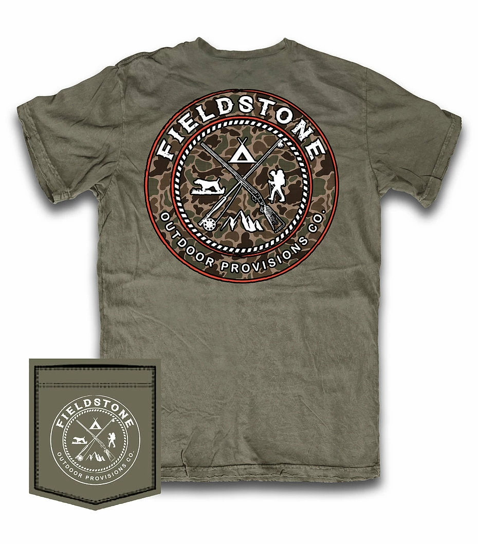 Fieldstone Outdoors Camo Logo Olive T Shirt