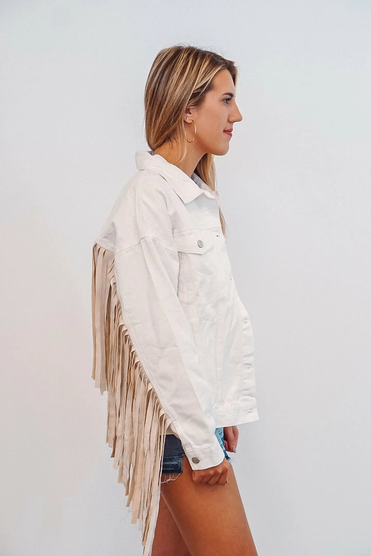 Ivory Denim Fringe Jacket
