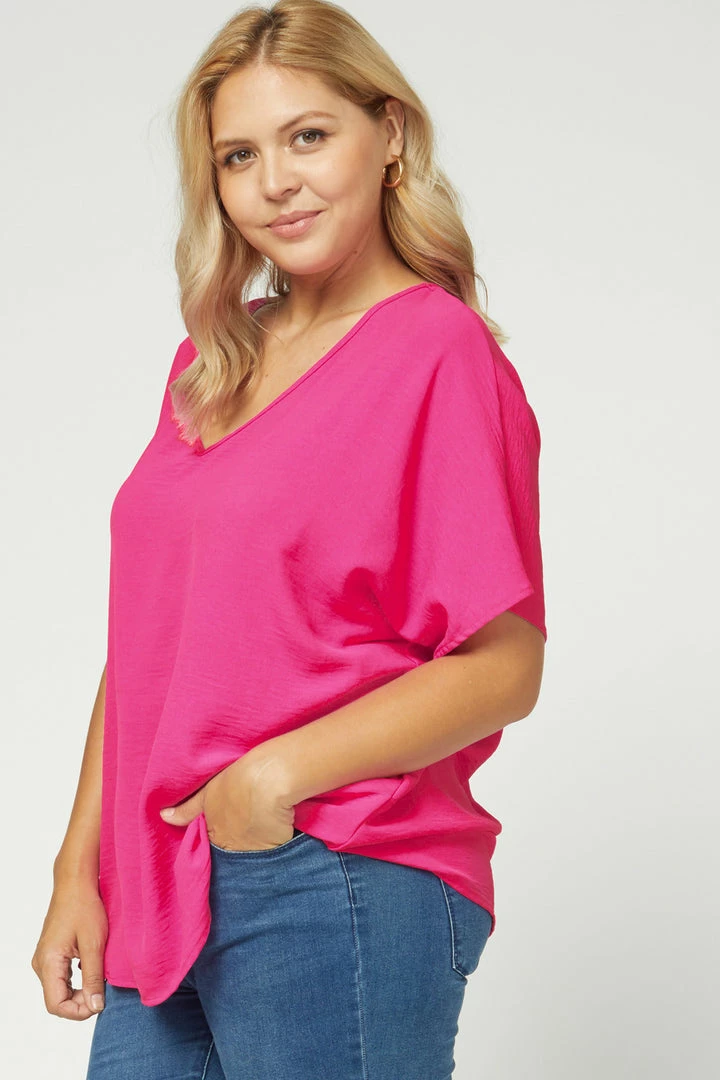 Hot Pink V Neck Oversized Top